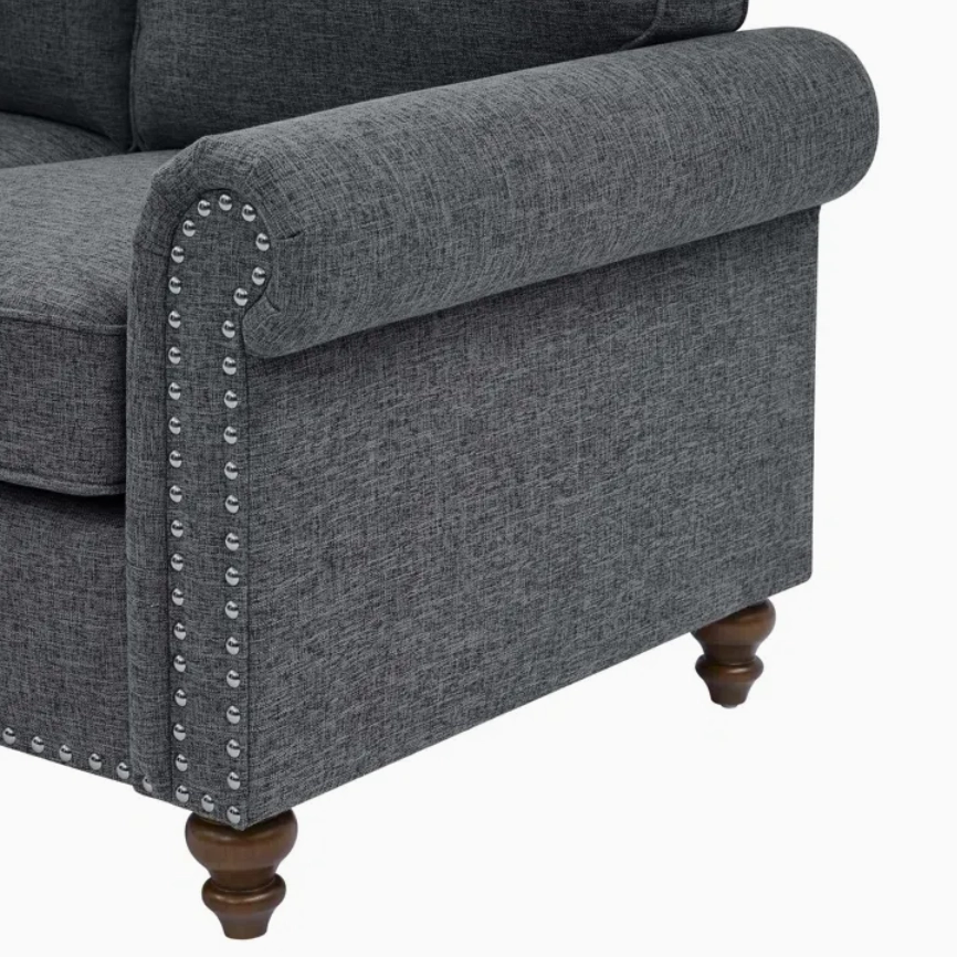 Поднимите атмосферу вашего отеля с помощью нашего тщательно созданного индивидуального дивана, предназначенного для объединения вечной эстетики с исключительным комфортом. Диван демонстрирует изощренную серую обивку, истощая заниженную роскошь, подходящую для различных тем, от классических залов до современных люксов. Деликатные отделки для ногтей украшают подлокотники и основание, добавляя изысканный штрих, в то время как изогнутые подлокотники и повернули деревянные ножки, наполняющие винтажное очарование, создавая фокус, который очаровывает гостей.